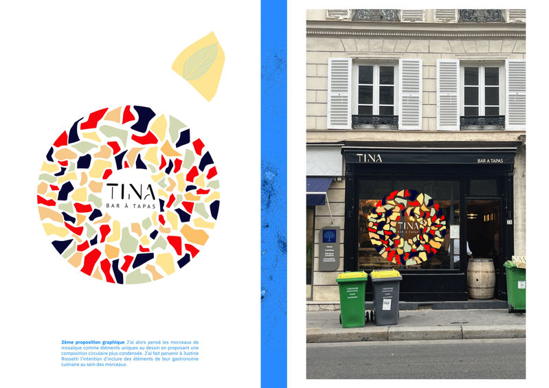 " Réalisation d’une illustration graphique pour la devanture du restaurant Tina des Chefs Pierre Chomet & Cristina Chomet " Stage dans l'atelier "Rosatelier"/Justine Rossetti
